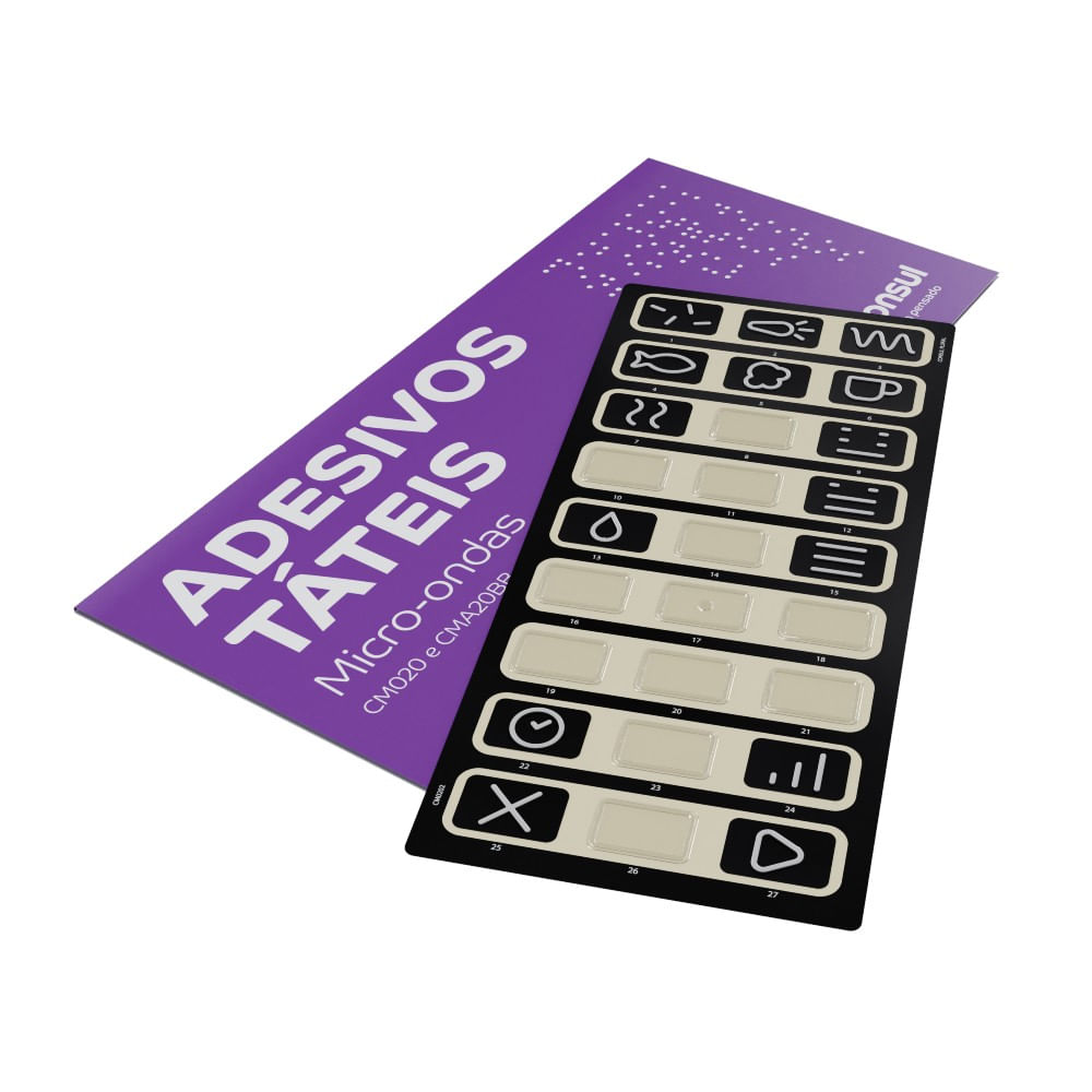 Os adesivos táteis para microondas são adesivos super aderentes e com ícones em alto relevo, que proporcionam às pessoas com deficiência visual o uso mais seguro e adequado dos eletrodomésticos Consul.